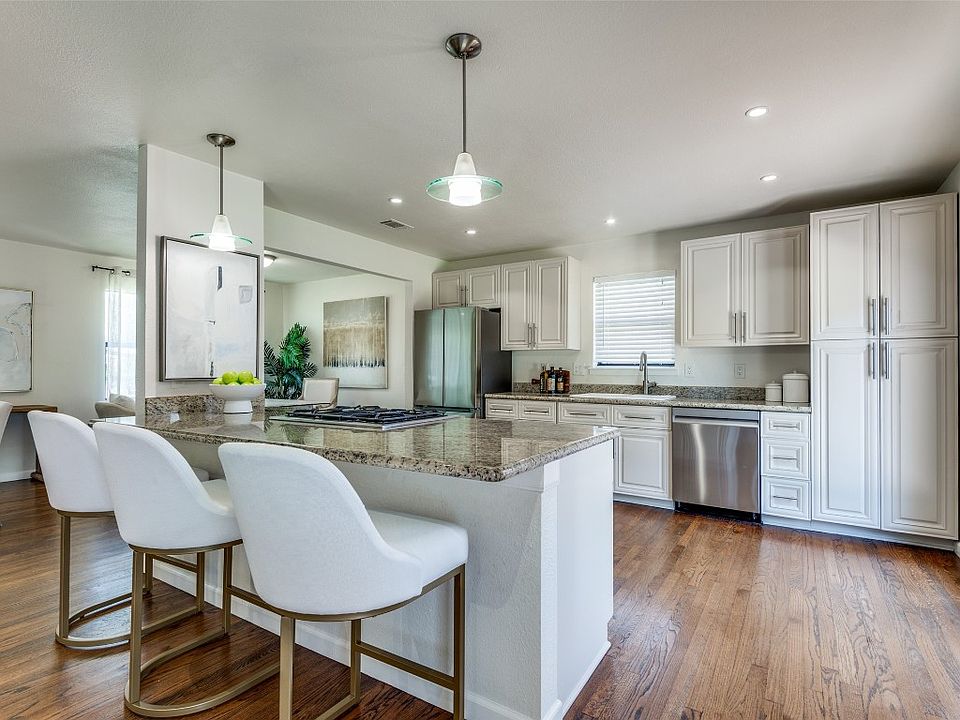 Nestled on a large lot in the highly desirable White Rock Lake area, This charming 2bed2bath ,1468 sq ft home welcomes you with its modern facade-Step inside a home filled with natural light and hardwood floors throughout. The open floor plan seamlessly connects the kitchen, dining area, and living room to create an open and inviting space, perfect for entertaining. The kitchen boasts stainless steel appliances, stone countertops, and freshly painted custom cabinets. Both bedrooms are large with updated baths. The master suite is an inviting space with a large walk-in closet. The second bedroom is perfect for guests, children, or a separate office. Outside, a large deck overlooks an expansive backyard. The two-car detached garage has a large attached workroom or additional storage. Walking distance to Ridgewood Park and So Pac trail. Proximity to schools, shopping, restaurants, and freeways.