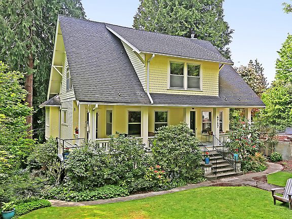 Verdant arboretum setting! Gracious 1908, 3+ bdrm Craftsman poised on 33,086 (+/-) sq. ft. lot close to Lincoln Park & Morgan Jct. Flanked by large trees & lush landscaping, this updated and well cared-for home offers a sunny built-in breakfast nook, formal dining, spacious living room, original hardwood floors, cedar siding, huge bsmt w/high ceilings/a workshop & detached garage. Spend time at home gardening or exploring nearby Lowman Beach Park, then relax on the grand lemonade front porch!