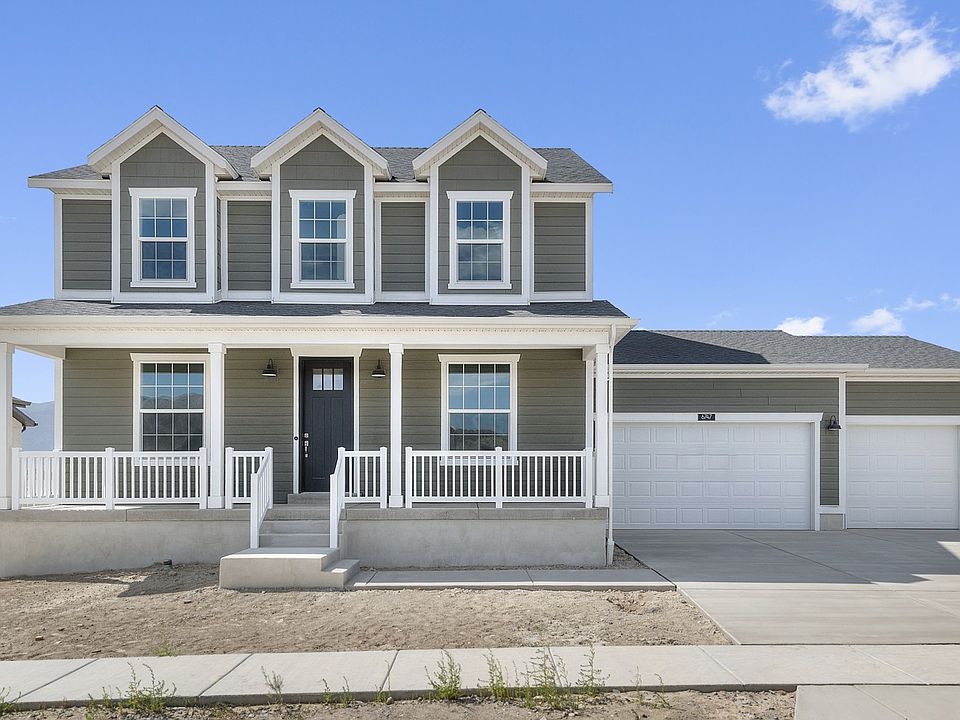 This beautiful 2500 Traditional home is located in a great master planned Eagle Mountain community! Featured you will find a modern kitchen with cotton maple cabinets, quartz countertops, and premium platinum gas appliances, complemented by a tile kitchen backsplash for a timeless touch. Flooring includes laminate hardwood, tile, and carpet, blending warmth with durability. This home features a 3-car garage with keypad and exit door, box window in the kitchen nook for extra space, can lighting, and Christmas light outlets. Enjoy modern conveniences such as a tankless water heater, energy-efficient options, and wood railing at the stairway. Interior details include two-tone paint, large craftsman base and casing, and an owner's bathroom with quartz shower surrounds, Euro shower glass, and satin & brushed nickel hardware-all designed for comfort and style. Come check it out today!