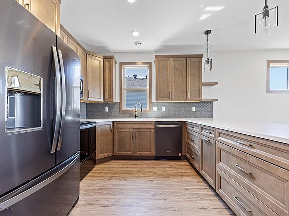 This is not your average slab-on-grade! Step inside and be amazed by the thoughtful design and finishes in this 3-bed, 2-bath home. Featuring luxury vinyl plank flooring and maple doors throughout, large windows in every room, and a custom kitchen with stainless steel appliances and maple cabinets, this home is full of modern touches! The living room offers an electric fireplace, with natural light pouring in from every angle and the primary suite is sure to impress with its spacious walk-in closet and beautifully designed bathroom with plenty of storage. The 2-stall, heated garage measures 22x30 allowing any size vehicles or room for lawn mowers and snowblowers. Fully sodded and fenced backyard with a patio, perfect for pets, entertaining, or unwinding. Don’t miss the chance to make this move-in ready beauty yours!