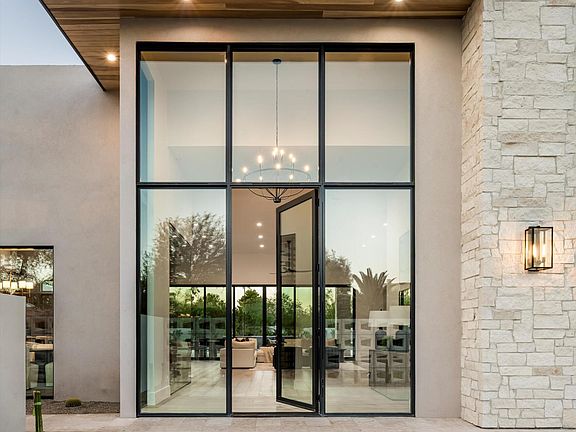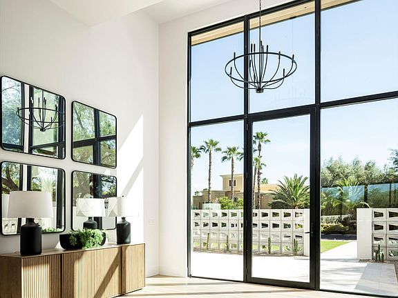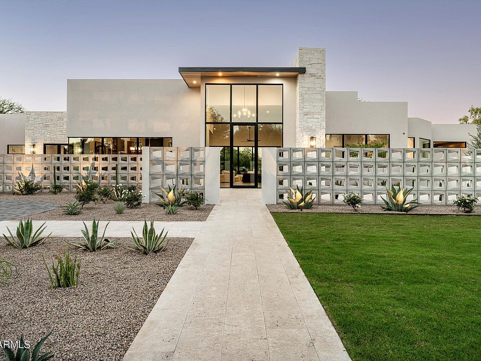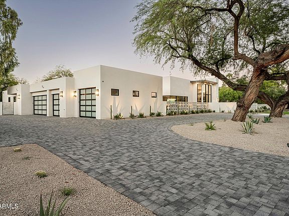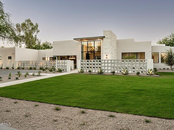 Tucked in a quiet corner of Paradise Valley, this amenity-rich residence, completed in September of 2025, offers modern design and luxury amenities rarely found under $10 million. Beyond the architectural concrete courtyard and wall of towering glass, find a massive great room anchoring a split floor plan as its hub. The 290-bottle glass wine partition reveals formal dining and lounge space beyond the dramatic foyer. An oversized kitchen with dual islands, Wolf/SubZero/Cove appliances, grand butler's pantry and casual living area border large expanses of full-height glass, creating a connection to the sprawling backyard. Outside, find a brand new heated dual-shelf pool and spill-over spa centered beyond a never-ending covered patio, grilling pavilion with bar seating, pickleball court, firepit, and turf field for the ultimate in outdoor living. The primary suite is larger than life and bathed in natural light. Enjoy a dual entry shower with all the accouterments, elegant soaking tub, dual vanities, dual water closets, and huge closet with stone island and private laundry. Four additional ensuites, a dedicated office/nursery, and 4-car garage round out this thoughtful layout to create the epitome of turn-key luxury.