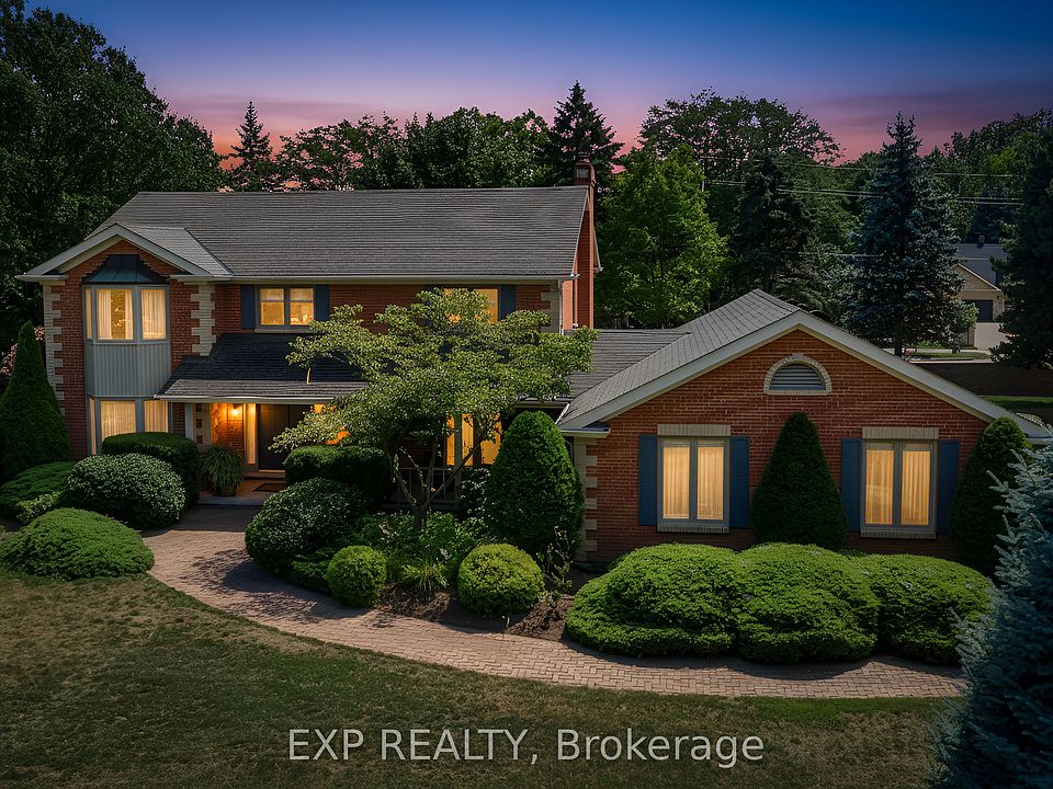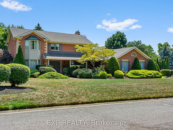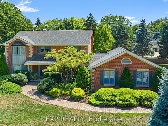 Welcome to 6748 January Drive.Nestled in Niagara Falls' prestigious Calaguiro Estates, this stately two-storey brick home stands as one of the community's original gems - a testament to quality craftsmanship and timeless design. Built by renowned Niagara homebuilder Frank Costantino of Costantino Construction Ltd, this residence offers enduring value and character rarely seen today.Set on a private 157 x 166-foot corner lot, the property is surrounded by mature trees and manicured gardens, offering an exceptional sense of privacy within the city. With more than 2,500 sq. ft. above grade plus a professionally finished lower level, the home provides generous space for comfortable everyday living and elegant entertaining. Inside, light-filled rooms reflect decades of thoughtful care. The main floor flows seamlessly from formal living and dining rooms with rich hardwood floors to a warm, inviting family room anchored by a classic gas fireplace. The bright eat-in kitchen opens directly to the back terrace, creating an effortless connection between indoor comfort and outdoor relaxation.Upstairs, the serene primary suite overlooks the gardens, complemented by three additional bedrooms - perfect for family, guests, or a home office. The lower level extends the living space with a large recreation area ideal for movie nights, games, or future in-law potential.Outdoors, the backyard forms a private sanctuary with a broad patio and retractable awning for long summer evenings, plus space to garden, play, or even add a pool or future addition. A double garage and extended driveway easily accommodate up to eight vehicles. Situated moments from top schools, parks, and shopping, this home blends classic architecture, enduring craftsmanship, and exceptional space in one of Niagara's most desirable neighbourhoods.