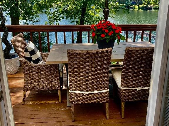Life is better on the lake! Gorgeous year round staycation vibes in this highly coveted full waterfront quiet cul de sac fully upgraded condo 2br + added upper level study/guest room 2.5 bath 2 level condo with attached garage, spacious open floor plan, fully finished basement, wood burning fireplace (1,851 sq ft total), docked-no storage required deck boat included, first floor laundry, walkable, friendly neighborhood within minutes from everything! Granite countertops, stainless steel appliances, high end backsplash, deep undermount double sink detachable faucet, tasteful Pottery Barn and capiz chandeliers, lvp flooring, upgraded farmhouse style bath vanities, fresh paint, interior opening deck doors w/built-in blinds, waterfront views while cooking. Includes docked cushioned, carpeted deck boat seats 6 (no storage required). Hop on your boat for a sunset cruise or relax on your freshly painted deck or dock w/built in bench and watch the kayakers, paddleboarders, canoers float by.