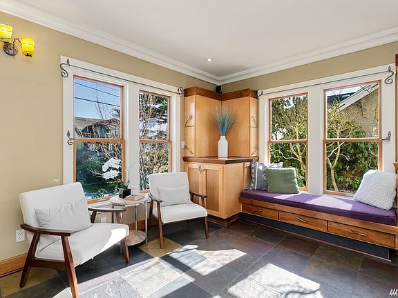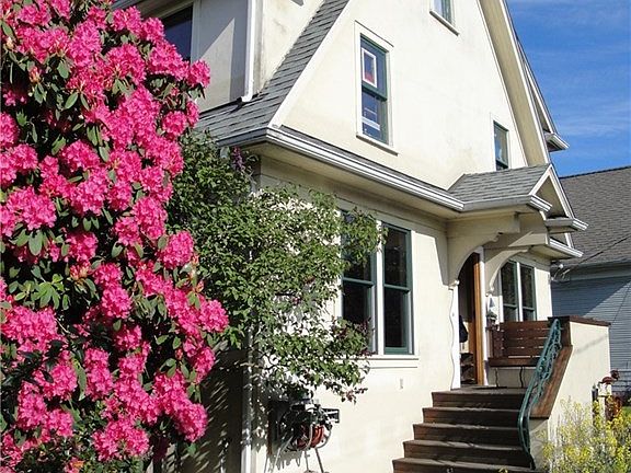 Six bedroom Tudor, 1920's construction including old growth fir floors but with modern high quality updates, including radiant heat, slate for main floor, mahogany kitchen counters, 36 inch oven and sink, solid maple wood built in drawers, cabinets, bookcases, window seats, throughout home with abundant storage and attention to detail. Custom metal, glass artwork, and light fixtures. Mature garden with outbuildings. A backyard oasis with a driveway EV plug in. Modern city life meets old charm.