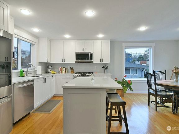 Spacious & updated standalone townhouse in the heart of Whittier Heights. All three bedrooms include en suite bathrooms. Beautiful skyline, Mt. Rainier & City views from Primary Suite. Fully remodeled kitchen includes new appliances, wine fridge & custom built-in bar, pantry, storage & new wall to wall carpet, Fresh interior & exterior paint, composite decking & wire railing. Heat pump & 3 ductless mini split units installed throughout the home for comfort all year round. New Gas water heater installed in 2019. Directly across the street is The Pantry, Delancey Pizza, Essex, Rosellini’s Bakery, Frankie & Jos Ice Cream Shop & The Fat Hen. Top rated schools & minutes to Ballard restaurants, cafes, breweries, & year-round farmer’s market.