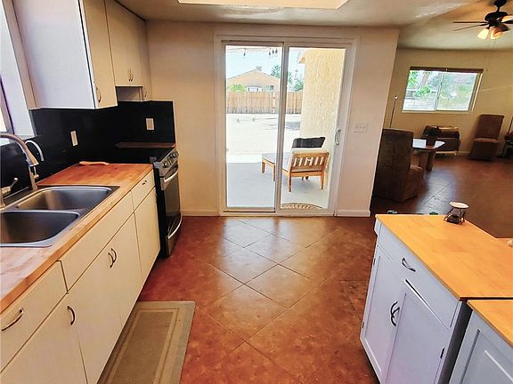 Very private 3 bedroom, 2 bath Solar Home in excellent neighborhood and location in 29 Palms. Beautiful views of Joshua Tree National Park to the South and a large unobstructed desert area to the west. Updated Bedrooms with new waterproof LVP flooring, new evaporative cooler, and fresh paint throughout. Wood-burning fireplace in the large living room and a recently renovated kitchen including the new island, new cabinetry and countertops with backsplash. New appliances include the new electric stove and oven, new water heater, new washer and a new electrical panel. The dining area has a brand-new mini split, a new double-pane sliding door leading to a newly covered patio area and a huge fenced backyard. The two-car garage has a new electric opener with a concrete driveway on a paved road. The master bath has a huge walk-in shower with glass doors and beautiful new tile. The attached bedroom has a large walk-in closet and a new mini split. The whole house has been painted and new blinds added. Close to the National Park entrance, the local City Park and easy access to 29 Palms Marine Base. Come take a look, many extras, excellent condition, and a great location for such a great price!