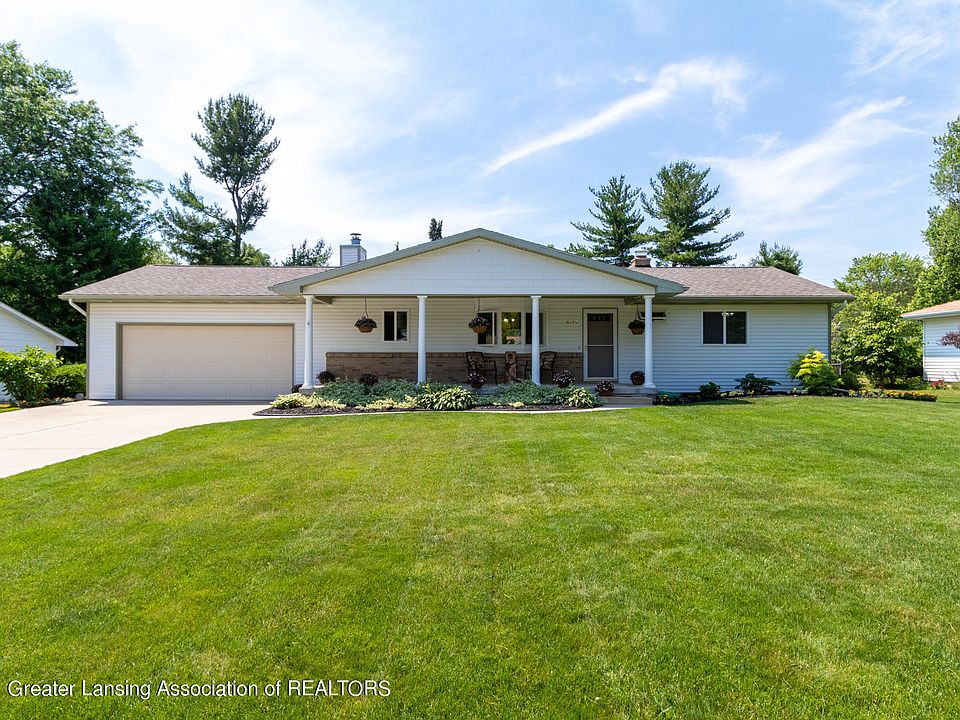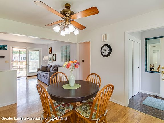 Welcome to 6749 Picketts Way located in Lansing! This beautiful home features 1,418 sq ft with 3 bedrooms and 2 baths. Enter the sun-drenched home to the dining room. Notice the hardwood floors throughout. The kitchen is equipped with full appliances. The open living room has a wood-burning fireplace as well as deck access. The 3 bedrooms and full bath are down the hall. The master bedroom and en suite not only doubles as a spacious laundry room, but has convenient walk-out deck access as well.The possibilities are endless in the full, finished basement with a workshop, plenty of storage room, and a pool table. The pillow soft, fenced-in back yard features an irrigation system for the flowers. The 2-car, attached garage and massive shed are the cherries on top. Don't miss out on this opportunity! Call for a private showing today!