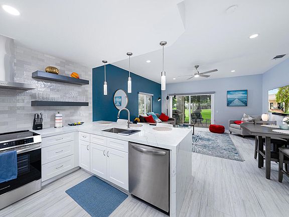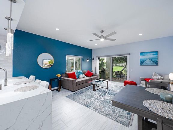 NEWLY REMODELED!!! Be the first to enjoy this completely remodeled, Southwest facing cul-de-sac condo located on the Lagos #5 golf hole. Every detail has been thoughtfully designed and executed to surround you or your seasonal tenants in luxury. Property is currently a seasonal rental and has an excellent rental history with on-site management. Available now to purchase and move in prior to any rental bookings for 2026. Desert Princess Palm Springs Resort is a full-service, gated community with 1200 homes, 35 pools and spas, 27 holes of PGA Championship golf, full clubhouse with bar, dining, pro shop and locker rooms. PGA professional golf instruction, full-service tennis and fitness center, full-service spa, pickle ball, walking trails and more. The Double Tree by Hilton resort is also on site.Just 10 minutes from Downtown Palm Springs and 20 minutes to Palm Desert El Paseo shopping. Stater Brothers grocery, Fed Ex Office, Post Office, Wal-Mart, Target, Trader Joe's and all major services are within 5-10 minutes.