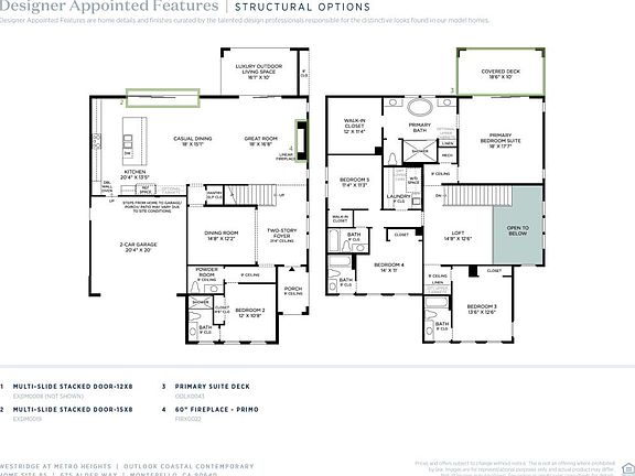 Furnished model home. From its bright, soaring two-story foyer and formal dining room to its expansive main living area and luxury outdoor living space, the Outlook is designed to impress. The open-concept great room and casual dining area with access to the luxury outdoor living space and rear yard overlook the well-designed kitchen featuring a large center island with breakfast bar, ample counter and cabinet space, and a roomy pantry with passthrough to the dining room. The palatial primary bedroom suite is highlighted by a large walk-in closet and gorgeous primary bath with dual vanities, large soaking tub, luxe shower, linen storage, and private water closet. Central to a generous loft, secondary bedrooms feature sizable closets, two with private bath, one with shared hall bath. Additional highlights include a versatile first-floor bedroom with closet and private bath, convenient powder room, centrally located laundry, and additional storage throughout. Disclaimer: Photos are images only and should not be relied upon to confirm applicable features.