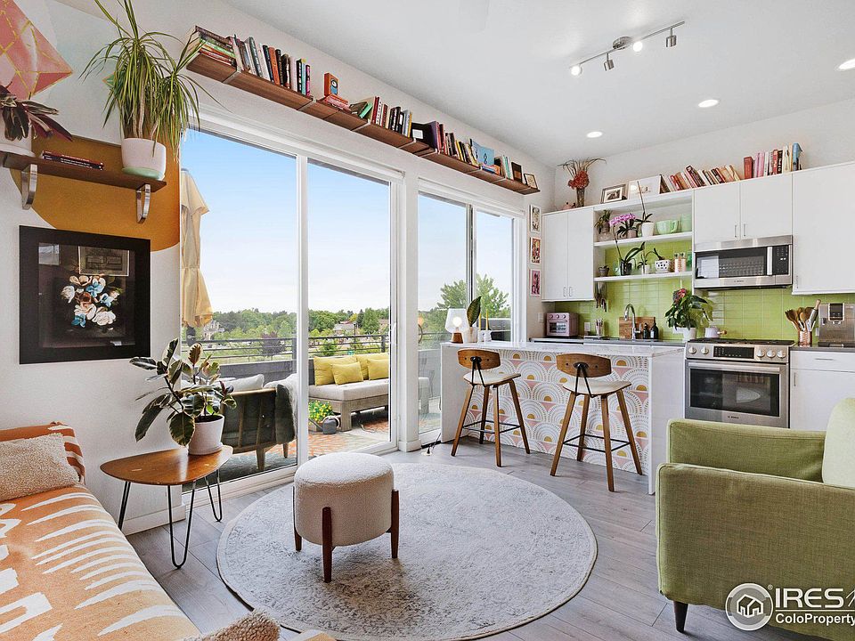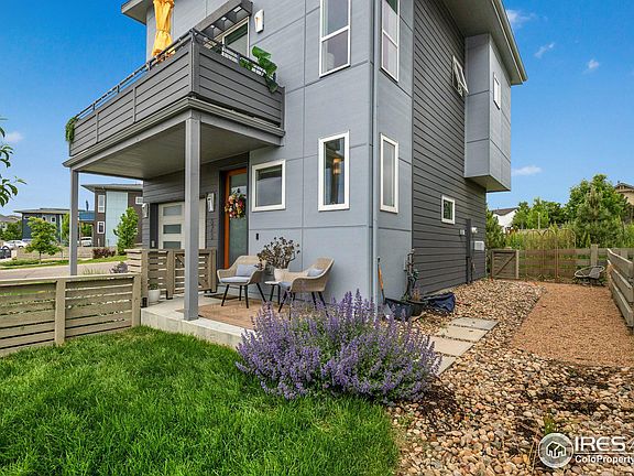 Welcome to 675 Amelia Lane! This charming and move-in ready modern 3-bedroom, 2-bathroom Markel home is a delightful find. Throughout the home, thoughtful design elements create a welcoming ambiance, while the south-facing, corner lot location offers an open floor plan and a large upper-level deck with stunning views. The entry floor is designed for convenience and practicality, providing ample storage options, a laundry room, a main floor bedroom and bath, and access to an oversized garage. The interior is bathed in soft, natural light from huge windows, complemented by 10' ceilings on the upper level and durable COREtec floors. The upper floor is perfect for entertaining, featuring an open-concept kitchen with custom finishes, a moveable marble-topped island, and a stylish tile backsplash. Additionally, the top floor includes the primary suite and an additional bedroom offering flexibility and space for your needs. Outside, the welcoming front porch and beautifully landscaped, fenced yard, provide inviting outdoor spaces. This home boasts a perfect location within walking distance of historic downtown Lafayette, trails, and playgrounds, and is situated within the highly-ranked Boulder Valley School District. Welcome to your new home!