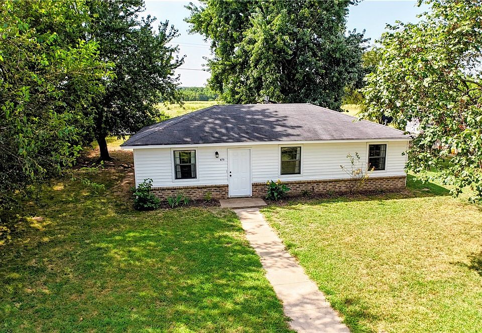 Updated and move-in ready! This adorable 960sf home has 3 bedrooms & an updated bath! The eat-in kitchen features newer appliances - dishwasher 2021, electric glass-top stove & vent hood 2024, & garbage disposal in 2021. Interior repainted. Doors added to the utility room. Updated lighting and flooring(in bdrms) in 2024/2025. Bathroom updates include vanity, faucet, shower head, & lighting 2024. HVAC was replaced in 2025, the roof was replaced in 2020, and a storage building was added in 2025. Both front & rear exterior doors replaced in 2021. Easy to maintain vinyl siding & brick exterior. Natural gas service on the lot, but the house is all electric currently. Wire fencing on 3 sides in the backyard with mature trees.