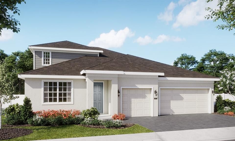 Welcome to the stunning Monticello plan in the exciting new Trinity Gardens Community! This expansive home with 2nd floor Bonus Room offers a thoughtfully designed open-concept layout with soaring 9'4" ceilings on 1st floor, 4 spacious bedrooms, 3 full baths, and a 3-car garage. The versatile separate Living Room provides additional gathering space, and the second-floor Bonus Room—with its walk-in closet and full bath—can serve as a fifth bedroom, guest suite, or media room. The Deluxe kitchen is a chef’s dream, featuring 42" cabinetry with crown molding, quartz countertops, a stylish tile backsplash, and stainless steel appliances including a built-in oven and cooktop. Enjoy seamless indoor-outdoor living with a spacious Family Room that opens to a covered rear lanai and a private backyard—ideal for entertaining. Elegant tile flooring flows through the 1st floor main living areas, and window blinds are included throughout for move-in-ready comfort. Future Community amenities will include Resort-style pool with shaded cabana seating, Dog Park, Walking Trail with fitness equipment, and Playground. The beautiful Trinity Gardens Community is situated in a prime location - just minutes from I-4 and a short drive to Downtown DeLand.