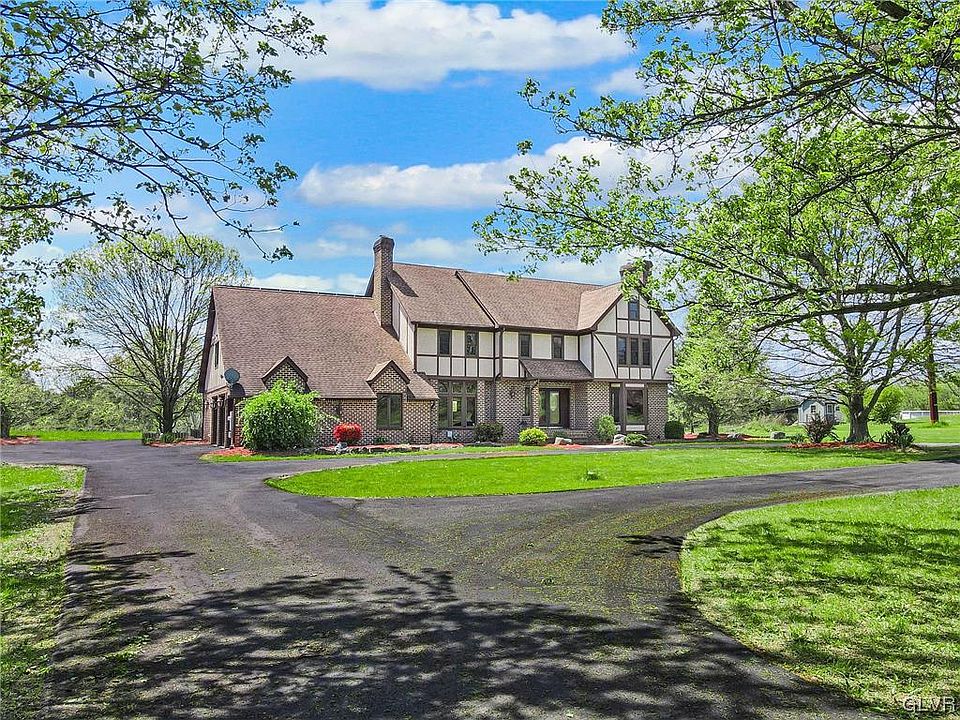 Straight from a fairytale, this charming Nazareth Tudor is situated on nearly 3 acres of well manicured land & embellished with superior details! Following the picturesque landscaping & entering the large French doors, you'll be lead to the foyer. Visit in the bright & airy LR and gather for delicious meals in the elegant dining room! Glossy HW floors throughout. Showcase your chef skills in the gourmet kitchen with SS appliances & breakfast area. After a day of swimming, enter the French doors to the cozy family room to relax. A bedroom & powder room complete the main level! Nestled upstairs is a tranquil master suite with sizeable dressing room for your array of fashion, and master bath w/ a jetted soaking tub to unwind! Two more beds & laundry room remain on the upper level. The finished basement offers a rec area, FR & wine room. Paradise awaits you with a vast paver patio & fenced in-ground pool! Located in Nazareth SD & near route 33, this home has everything you need & more!