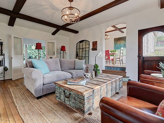 CORNER LOT, HUGE PRIVATE BACKYARD - AN ENTERTAINERS DREAM HOME. This 1937 Spanish Revival home is on a sprawling corner lot. One of the original 36 classic Spanish homes designed by Hollywood Riviera architect/developer Clifford Reid. All 3 bedrooms have private bathrooms. The 3rd bedroom is perfect for the in-laws, a nanny or short-term rental featuring its own private entrance, bathroom and living room. This stunning home has the perfect flow for entertaining with the over-sized living room anchored by a stucco fireplace that easily transitions to the sun room, the dining room and to the completely remodeled kitchen including a CornuF?? range, a breakfast nook and all-new custom cabinetry. Step into the backyard to your private oasis featuring a huge deck, fire pit, garden and expansive yard overlooking LA with low maintenance landscaping. Plenty of room for a future pool! Perimeter trees provide great privacy. The extra large master bedroom will be your private spa retreat. Enjoy a walk-in closet and en suite bath with heated floors, peek-a-boo ocean view, a clawfoot tub, custom-made vanities, a private toilet room and a rain head shower. Next to the master bed is the large 2nd bed with a darling window seat and direct access to the guest bath. This home features Spanish tile throughout, exposed beam ceilings, original hardwood floors, iron-grilled picture windows and interior french doors. Lots of upgrades! Best deal on the market. Don't miss this opportunity!