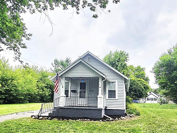 Inside, the home is clean, updated, and move-in ready. The layout includes a large front living room and a spacious eat-in kitchen with a sliding door leading to the backyard. Recent updates include a newer kitchen, luxury vinyl plank flooring, vinyl wi!ndows, fresh paint, central air, and forced air heat. The full basement is unfinished but freshly painted with glass block windows, making it clean and functional. A covered front porch adds charm and curb appeal, while the mechanics garage provides ample utility.