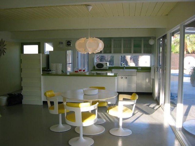 A great example of why we all love Palm Springs Mid-Century homes! Fun, bright, eclectic remodeled Alexander in the desirable Racquet Club Estates neighborhood has a sparkling boomerang shaped pool with tremendous mountain views.