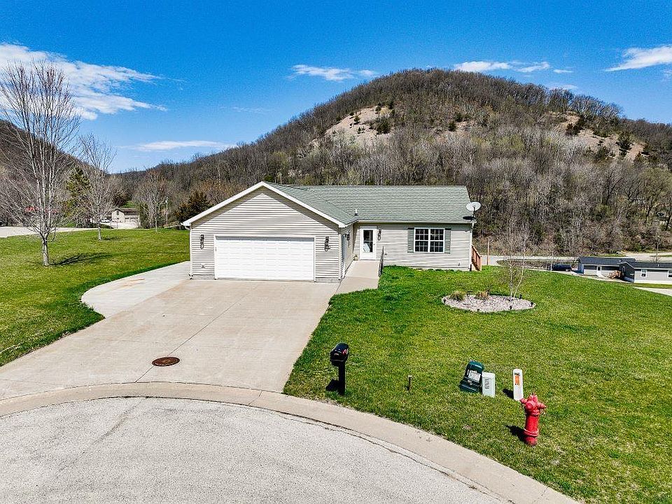 Check out this beautifully maintained home with gorgeous bluff views! Quietly located on a cul-de-sac, this three bedroom ranch is handicap accessible, and has an open living room, kitchen, and dining space. Right off the kitchen is a maintenance free deck (that view!), perfect for grilling and entertaining. Largest bedroom has access to 3/4 bathroom and good-sized closet. Laundry room and second bedroom (office?) completes the main floor. The lower level - in-floor heat - has a family room, 3rd bedroom, 3/4 bathroom, and a walk-out to the patio. Two-car attached garage but if that's not enough space, there's a handy garden shed for more storage. And, there a 12' x 25' concrete pad for the RV (or boat..). Whether you're starting out, ending up, or anywhere in-between, this is a good spot to be!