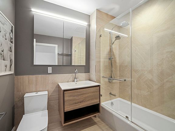 Live Parkside across from Herbert Von King Park, in the heart of Bed Stuy. This one of a kind two bedroom has been customized by the current owner to feature endless closet and storage space. Work from outdoors as this apartment has its own roof terrace with direct access. The interior design concept maintains the integrity of the townhouse, balancing modern yet warm finishes such as wide plank hardwood flooring and sleek modern kitchens, with decorative, classical details like exposed brick walls and wood moldings. The designer kitchen is styled with premium stainless steel appliances and contemporary bathrooms effect a sense of tranquility, featuring premium brand fixtures and porcelain wall and floor tiling. Located in the heart of thriving Bedford-Stuyvesant, 675 Lafayette offers residents a little of everything: a flourishing dining and nightlife scene, boutiques and local staples, and beautiful parks. The Bedford-Nostrand Avenue G train station is just over one block away, making travel near and far a breeze.