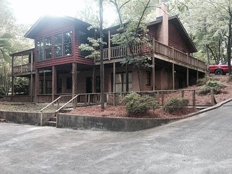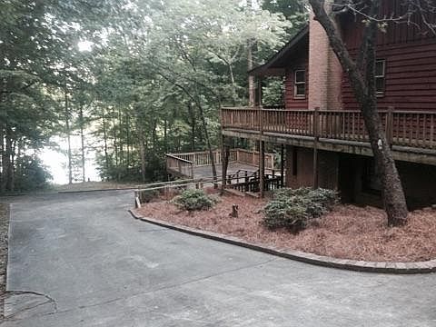 Great value for such a large lot and so much square footage on a peaceful lake cove! Privacy, but also a great area. You won't find a deal like this for a 4br, 4ba with 2 kitchens and full basement! 2 br, 3 baths on upper level plus good sized eat in kitchen, living room, and sunroom. Full finished walkout basement boasts ANOTHER full kitchen, great room, and 2 more bedrooms and a bath. There is a wrap around deck and another detached deck area plus a lovely patio. The lot is 1.8 acres and is not steep to the water like many. The little shed is perfect for more storage and there is tons of driveway space and a covered attached carport. The home is at the end of a cul de sac and has a dock in place. Just a little cosmetic updating and this would be a dream vacation home, OR FULL TIME HOME!