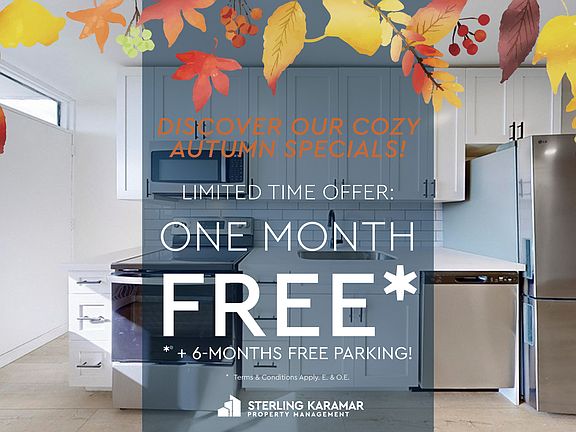 - Special offer! Limited Time Offer | Enjoy 1 Month FREE on a 13-Month Lease + 6-Months FREE Parking!* - Limited Time Offer | Enjoy 1 Month FREE on a 13-Month Lease + 6-Months FREE Parking!* *Terms & Conditions Apply.
