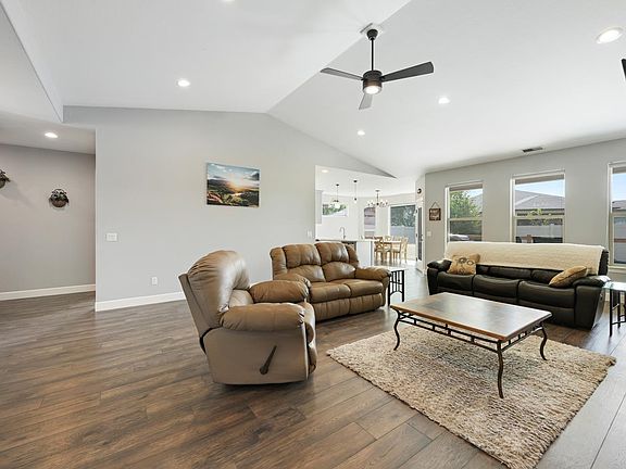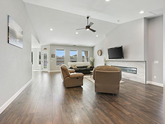 Welcome to your new favorite place to call home on Medhurst Lane! This, like new ranch style beauty in the coveted Walnut Estates neighborhood is ready to wow you at every turn. Talk about curb appeal - this home is serving up a sleek stone and stucco facade with landscaping that’s so easy to maintain, you’ll actually have time to enjoy it. No more spending weekends pulling weeds - just sit back, relax, and soak it in. Step inside, and you’ll immediately fall in love with the clean, contemporary vibes. The vaulted ceilings create an open, airy feel, while the modern fixtures and wood laminate floors add the perfect touch of class. But wait for it… the showstopper is the elegant gas fireplace and those huge picture windows that flood the space with natural light. Now, as for the kitchen - this one’s a stunner! Quartz countertops, shiny stainless steel appliances, and a kitchen island that’s ready for you to whip up your signature dish and serve. Add in a spacious pantry and stylish white cabinets with a trendy brick tile backsplash, and you’ve got yourself a kitchen that’s both beautiful and functional. Bonus: the dining area has sweet views of the outside, perfect for enjoying a meal or casual conversation. The primary bedroom is the place of your dreams - bright, spacious, and is ready for you to stretch out and relax. And the primary en-suite bathroom? It feels straight out of a design magazine. Picture yourself unwinding in that gorgeous free-standing tub or stepping into the luxurious walk-in shower. The walk-in closet is large enough to hold all your clothes, accessories and then some. Two additional bedrooms offer plenty of space for whatever you need - whether it’s a guest room, home office, or creative studio. They share a sleek full bathroom that’s as stylish as the rest of the house. And out back, you’ll find a charming, easy-to-care-for yard with a covered patio that’s perfect for BBQs or just kicking back and enjoying the fresh air. Let’s not forget the RV parking. Yep, this home has room for your toys, too. Located in a peaceful, quiet neighborhood, this home is the perfect balance of tranquility and convenience. It’s got everything you need, and then some. Don’t miss your chance to make this beauty yours!