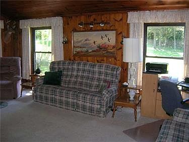 Enjoy one level living in this 2 bedroom home on 3 acres located near the Foxburg Golf Course. Home offers a large LR with stone fireplace, front sun porch also has a fireplace, kitchen with breakfast nook, large basement, 3 stall garage, a block bldg. and beautifully landscaped. High speed internet and cable are available. Roof was replaced the second week of August 2013!