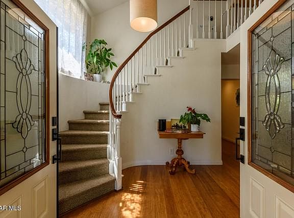 Wonderful Wood Ranch home behind the gates of The Greens.On suite bedroom downstairs along with a powder room.Large loft and 2 more bedrooms and bath upstairs.Kitchen has been updated with pullout/drawer cabinets and butcher clock counters. Beautiful bamboo flooring throughout the house. Some dual pane windows. All ductwork was refurbished within the last 3 years and new insulation was added in attic.Bathrooms are fabulous with new slate tile floors and shower enclosures. Lovely back patio backs to open space. Cul-de-sac location with open space all around.Home is only connected to neighbor by the garage roof. 2 car garage with direct access. This home has a clean lined European look. Ready to move in.Nothing like this home in the area within this price range. Must See!!