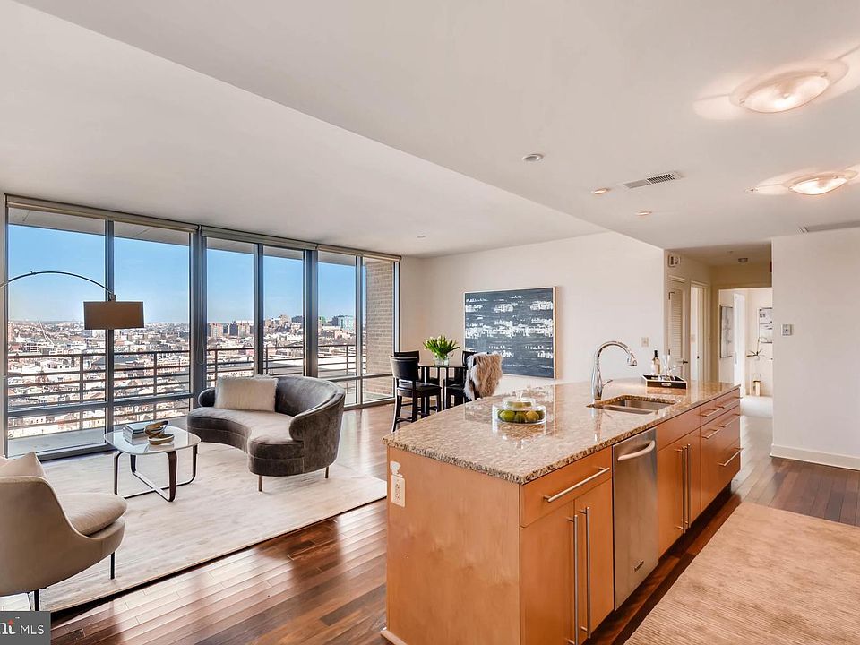 Stunning Harbor East corner residence at The Vue. This two bedroom two bath condo offers floor-to-ceiling windows with panoramic city and partial water views, gourmet kitchen with oversized island, rich hardwood flooring, private balcony, and 1 parking space. The Vue Condominium is located in Baltimore's most desirable neighborhood steps to the finest restaurants, boutique shops, Whole Foods, Starbucks, the Inner Harbor, waterfront and nightlife. Take the elevator to the MAC gym or the Harbor East Cinemas. Conveniently located to I-83.