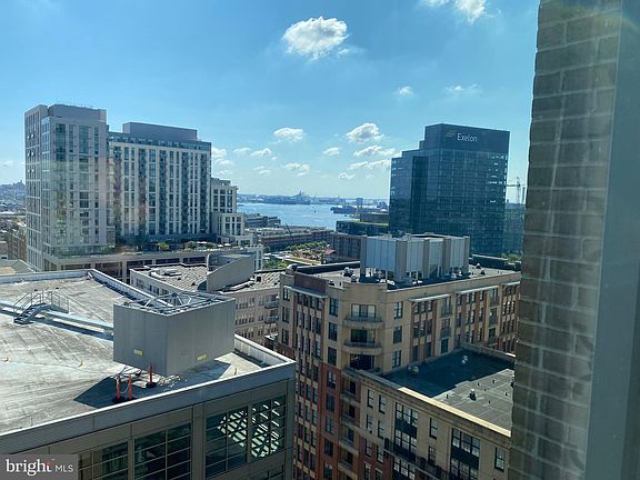 Stunning water views from the Primary bedroom! You won't believe the morning light, sunrises and sunsets! Come view this fabulous upscale urban condo at The Vue in Harbor East. This 2 bedroom, 2 bathroom 19th floor unit has a wonderful vantage point showcasing interesting City landscapes and water views. Since it faces northeast, it has wonderful light that other units don't have because of tall neighboring high rises. The long balcony off the living and dining room also overlooks the wonderful community green-space terrace off of the 8th floor of the building. The unit has hardwood floors, a great open layout and gourmet kitchen with giant island, and 2 good-sized bedrooms. The primary suite has 2 walls of floor to ceiling windows for major wow factor. The primary suite also has a large walk-in custom closet and an oversized full bath with double vanity, soaking tub, and walk in shower. At The Vue, enjoy living in a secured building with concierge, on-site garage parking, and interior access to the Maryland Athletic Club (MAC) where you have special access to the community room and with membership can enjoy warm saltwater lap pools and full service luxury fitness amenities. Outside, you are surrounded by the exclusive shops of Harbor East and Harbor Point, the City's premier dining and entertainment destinations, and enjoy easy access to all things waterfront via the promenade. The Vue is a short walk to the new Whole Foods Market as well. Condo fees include parking, amenities, and utilities*!