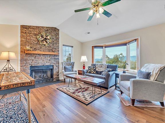 Million-dollar views surround this stunning one-level home in the desirable Laurel Mountain neighborhood. Set on nearly 5 acres on a cul-de-sac, the property borders the Read Mountain Reserve with direct access to trails. The open living room features cathedral ceilings, a bay window, and a stacked-stone wood-burning fireplace. The updated kitchen shines with new granite countertops and abundant storage. A spacious primary suite includes a tiled shower and tub, while engineered wood floors flow throughout. Plumbing for half bath in garage. Enjoy an oversized 2-car garage, fenced backyard, and a climate-controlled addition in the back with large hot tub, completed in 2023. New roof in 2022.