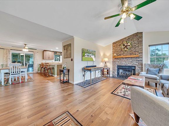 Stacked-stone wood-burning fireplaceFenced backyardNew granite countertopsMillion-dollar viewsAbundant storageCathedral ceilingsEngineered wood floors