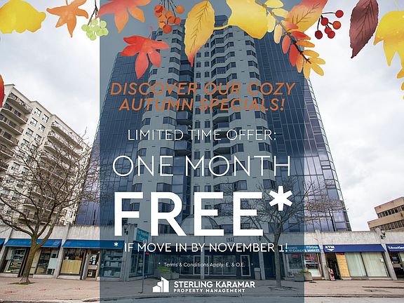- Special offer! Limited Time Offer | Enjoy 1 Month FREE on a 13-Month Lease If Move-In by November 1st!* - Limited Time Offer | Enjoy 1 Month FREE on a 13-Month Lease If Move-In by November 1st!*