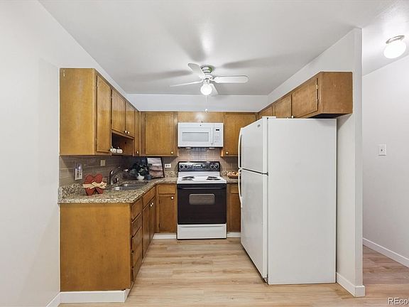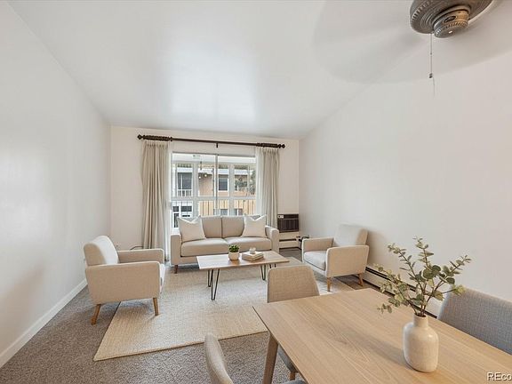 Updated 1 bedroom - great location- great price- move right in! This condo is a top floor with vaulted ceilings, 1 bedroom, 1 full bathroom, with a number of updates. Brand new carpet in living room and bedroom, vinyl plank in kitchen/hall/bathroom, new baseboards, and new interior paint! Kitchen features granite countertops, white fridge/microwave and white/black range. Bathroom features updated white vanity/top, and medicine cabinet mirror. Spacious bedroom with 2 closets, ceiling fan, and updated digital wall ac unit. Living room with wall ac unit, and slider door access to a lanai balcony featuring new painted concrete floor, and double pane vinyl glass/screen window enclosure. Bonus additional storage room in building. Priced to sell- this one is one to see! **Windsor Gardens is Colorado's Largest Age 55+ Active Adult Living Condo Community. Did you know? Monthly HOA Dues include annual property taxes! And heat, water, sewer, trash, round-the-clock patrolling community responders, full time onsite association management, grounds/building maintenance, and activities department. Enjoy clubhouse amenities such as fitness center, indoor/outdoor pools, hot tub, sauna, billiards, library, craft rooms for ceramics, sewing, woodworking, and 9 hole par 3 golf course and onsite restaurant both open to the public. Stay engaged with a wide array of activities, clubs, and events scheduled every month. Additional features include garden plot program, private walking trail and nature preserve, and RV/Boat storage. The Highline Canal runs full length along south side of the complex. RTD Bus Stops located thru-out the community. FHA/VA approved. Close to restaurants, stores, shopping…Minutes to Lowry, Hwy 225, Cherry Creek…Easy access to DIA and downtown. Come see for yourself what Windsor Gardens has to offer. ©2021**