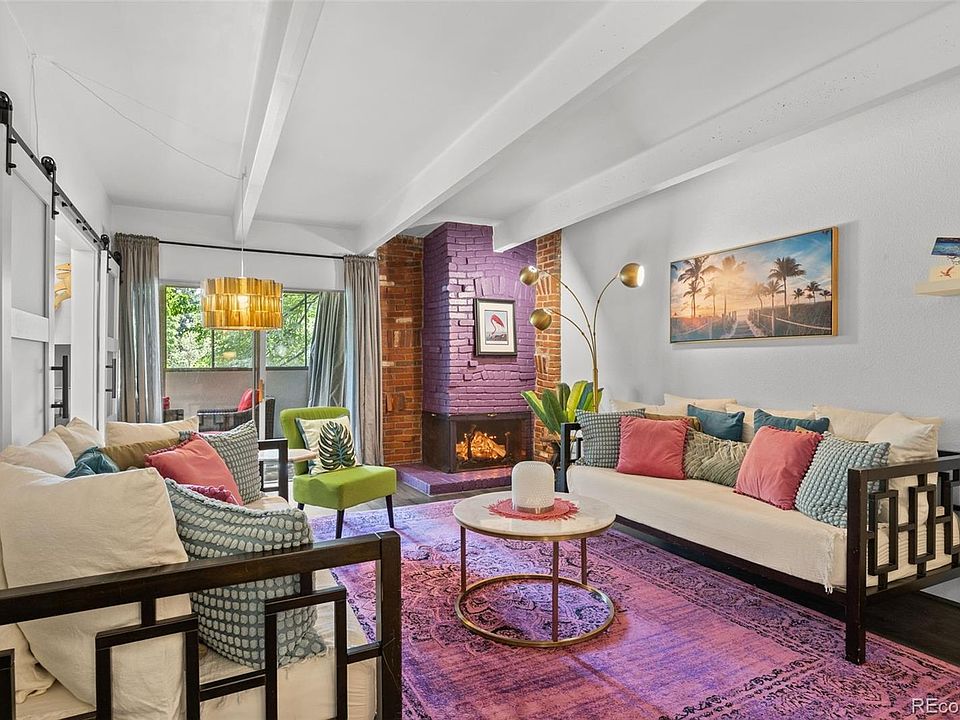 Additional upgrades include new flooring, modern built-ins in the dining area, barn doors between the second bedroom and living room that add both function and flair. The spacious living room centers around a cozy fireplace, leading to an expansive, enclosed sunroom that adds substantial 3 season flex space, ideal as a home office, reading lounge, or creative studio.