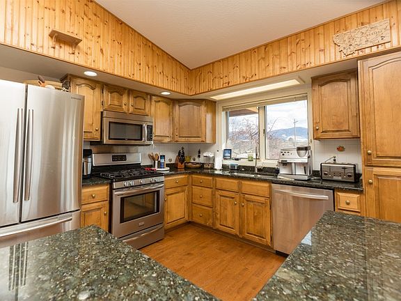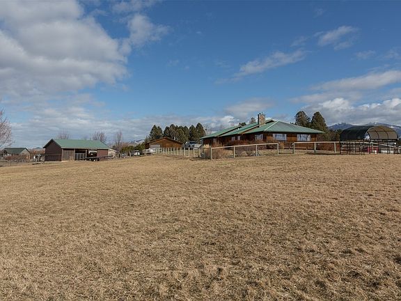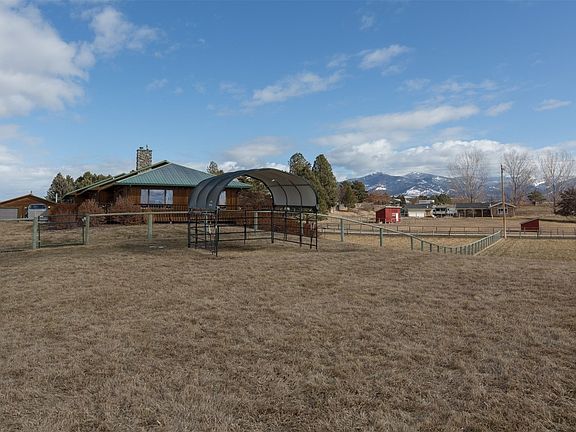 5 acres in the country with views of the Bitterroot Mountain Range. Large cedar home with great floor plan. Fully finished lower level with walk out feature. Attached garage has all the space for storage plus a finished and heated shop and new 40 X 40 barn. Land has water shares for irrigation, pump and pipe included in the sale. Land has new grid wire fencing for pets around the entire perimeter and is also crossed fenced. Set up for fowl, horses, and dogs. Deer fenced garden has raised beds, drip water, garden shed on concrete foundation with electricity plus water hydrants at key locations. Lawn and pasture is irrigated by sprinkler and provides a large green surround for this lovely ranch style home. Apple and plum trees plus a variety of berries. New variable speed pump in well with good production. Kohler propane generator. Too many upgrades to list. Ask for Improvement list for more information regarding more features of this lovely updated property.
