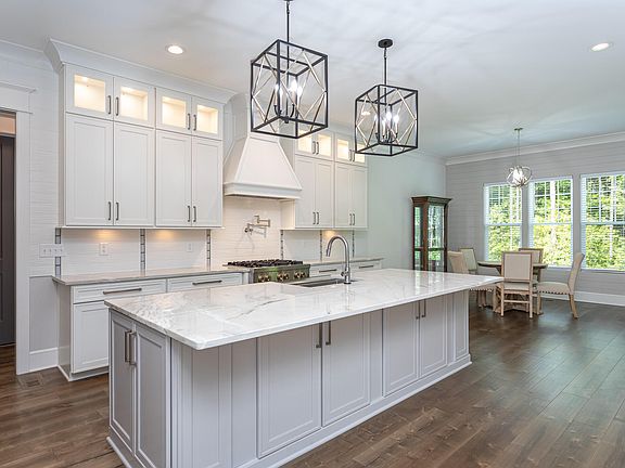 Beautiful home with many custom features nestled on a wooded +/-acre site.  Stately arched double door entry introduces you to this lovely home.  Owners suite on MAIN level with accent beams, door to covered porch,  tiled walls and floors in bath, soaking tub, oversized shower & auto light on in the large walk-in closet.  Guest room or office on MAIN level.  Separate dining room with sophisticated trim details.  Absolutely gorgeous kitchen with island, 6 burner gas cooktop, 60'' fridge, wall oven, warming drawer, pot filler butlers pantry and cabinets to ceiling with accent lighting. Walk in pantry with granite and auto light on.  The family room can accommodate large furniture, includes fireplace, built-ins with accent lights and 11' coffered ceiling!  Open plan with lots of natural light!  Double sliders lead to covered porch with tile floor and stained volume ceiling and wow, what a tranquil view! Engineered floors flow all thru downstairs and upstairs hall. Lighted stairs lead to second floor which is a continuation of this thoughtfully designed Tony Frazier plan.  You'll find 2 bedrooms , 2 baths, bonus, media/flex room, very large linen closet and two unfinished walk in storage areas!   3 car garage with painted floor, utility sink and EV charging. Irrigation system.  The architectural details, long driveway, large front porch and mature landscaping truly creates impressive curb appeal.  This does not feel like a re-sale!  Fantastic community amenities including a pool, pond, playground, volleyball and more is a short walk or bike ride down Willard Dr.  Such a beautiful home!