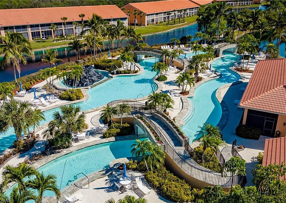 Beautiful, bright & spacious... This second floor 2BR/2B condo is conveniently located across the street from the lap pool, pickleball, tennis & the Mondago exit...Vaulted ceilings give you a grand feeling from the minute you enter the unit...Coastal feeling with your vinyl flooring & beautiful & neutral furnishings & decor, all included in this TURNKEY property. Your favorite room in the house will be the 300 Sq Ft LANAI enclosed with glass doors for A/C on a hot day, clean floors on a rainy day, & on those magnificent days, a tropical breezes when you open them up!! Very large primary bedroom w/ walk-in closet & bathroom with his/hers sinks...This amazing community is home of the famous RESORT STYLE LAZY RIVER POOL, A MUST SEE!! One lap around & you will make many new friends. Lots to do in season as BOCCE & PICKLEBALL HAS MANY PLAYERS!! Marco Island & Downtown Naples are equal distance away & offer fabulous dining, amazing shopping & endless white sand beaches...Turnkey w/ everything included, you are all ready to enjoy PARADISE!!