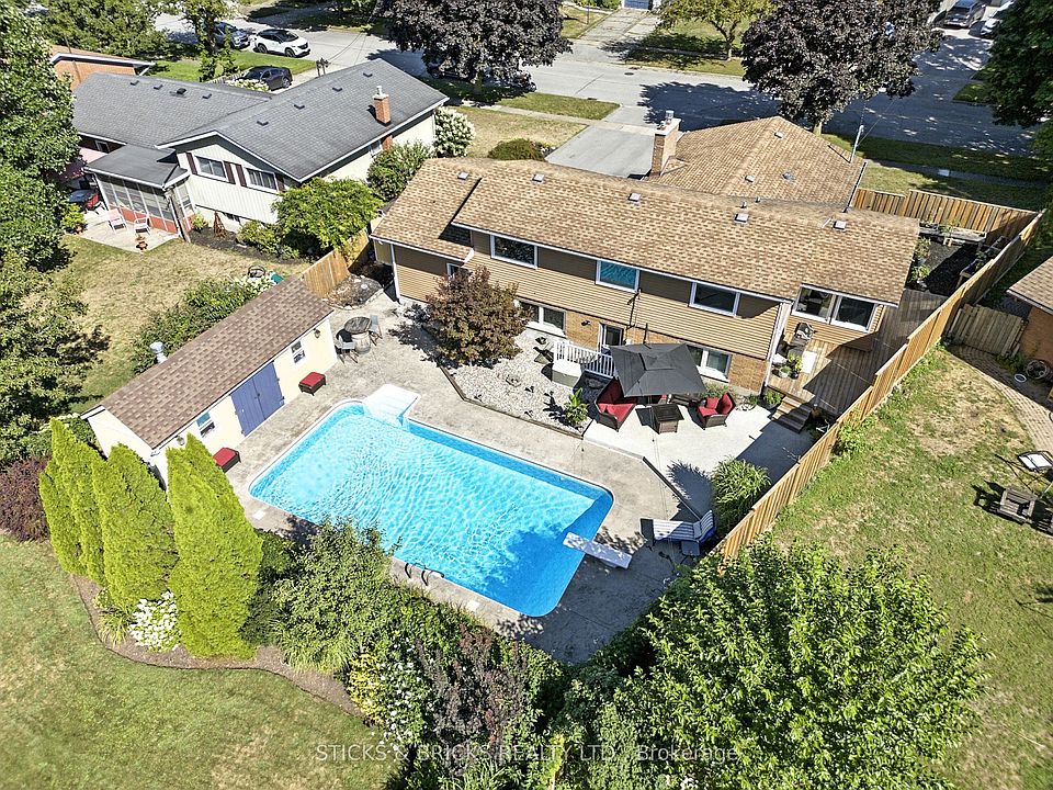 Don't suffer through another hot summer, here is a perfect family home with a heated, inground salt water pool; the centerpiece of this beautifully landscaped back yard with a pool house, shed, deck and with no grass to cut. Set your family up in this lovely split, amazingly close to shopping, schools, parks restaurants and highway access. Finished on all 4 levels, there is room for everyone, and even the possibility of an in-law suite with a separate back entrance. Carpet free with replacement windows and an updated kitchen you will enjoy the convenience of 3 bathrooms and 4 or 5 bedrooms. Plenty of parking on the double drive as well as a single garage. Come and check out this home nestled in the ever popular Cherrywood Acres Subdivision.