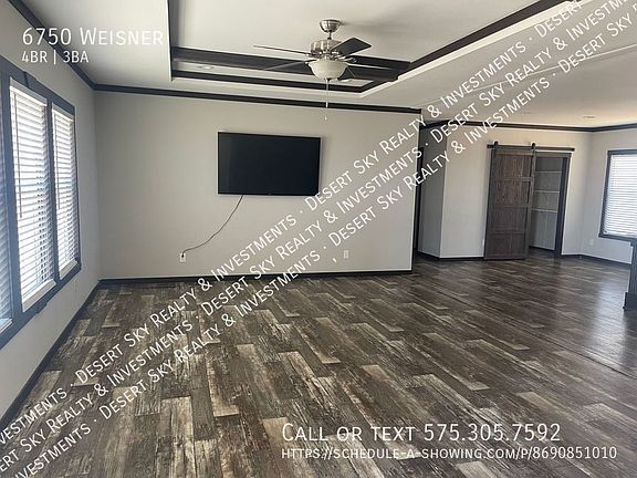 Welcome to country living in this modern mobile home located on a spacious 1-acre lot in Las Cruces, NM. This home features 4 bedrooms and 2.5 bathrooms, perfect for those looking for a comfortable and convenient living space. The carpeted bedrooms provide a cozy retreat, while the fully fenced yard offers privacy and security. Enjoy mountain views from the comfort of your own home. The spacious kitchen is perfect for preparing meals and entertaining guests. With washer/dryer hookups included, laundry day will be a breeze. Plus, with the option to have livestock on the property, this home is ideal for those looking to live a rural lifestyle. Dogs permitted with approval and additional monthly fee. Max 2 pets. No aggressive breeds. Must be at least 1 year old and spayed or neutered. Max of 5 Chickens allowed, coop is provided Livestock allowed, max of 2 horses or donkeys Maximum of 4 goats or minis (donkeys, mini horses or ponies) Tenant responsible for all utilities and yard maintenance around house. Deposit equivalent to 1 months rent. Minimum 1 year lease. $30 application fee. No smoking allowed anywhere on property. Renter's insurance is required. Don't miss out on this opportunity to make this modern mobile home your own! 1 Acre Lot Carpeted Bedrooms Fully Fenced Yard Large Lot Livestoclk Allow Mountain View None Refrigerated Air Spacious Kitchen Washer/Dryer Hookups