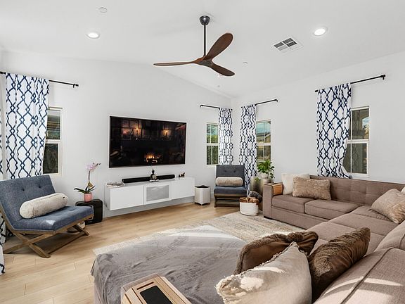 This like-new, single-story 2020-built smart home (1,924 sq ft) features an open floor plan with 9-ft ceilings, upgraded kitchen finishes, elegant flooring, and window treatments. It includes a full smart home package, security cameras, ceiling fans, soft water system, smart toilets in both baths, modern lighting, and upgraded floors. The pristine 2-car garage has epoxy floors, a mini-split system, and a Tesla EV charger. Outdoors offers low-maintenance artificial turf, a covered patio, BBQ area, and alley access. The home has a full solar system with 2 Powerwall batteries for energy independence.
