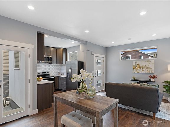 $5000 seller credit! Gorgeous new construction standalone home in Ballard! Tucked away from the road, this 3 bed, 1.75 bath home features quality finishes including stainless steel appliances, quartz counters, and shaker cabinets. The 3rd floor primary suite includes a walk in closet, en suite bath, and laundry. Two addt'l bedrooms and full bath are located on the 2nd level. There's plenty of outdoor space with a private deck off of the living room, a patio, and a rooftop deck with skyline, Sound, and Mt. Rainier views. The heat pump keeps you comfortable year round, no worries when it gets hot outside! Dedicated driveway parking, and it's not a condo or DADU. Walk Score of 87, transit just 2 blocks away, this is Ballard living at its best!