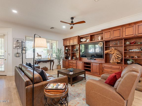 amAZing sunrise/sunset views from your private resort-style back & front yards in Springfield Lakes Gated Resort Community! Beautifully landscaped low maintenance front & back yard. Backyard features turf with brick border, pavers & luscious fruit trees! New 2024 Interior paint, New 2024 flooring throughout, & remodeled bathrooms (2024). Enter this home to a sparkling clean & bright interior w/updated kitchen 42 Inch Cabinets, NEW stainless appliances with Dual Ovens. This Entertainers Kitchen is open to a family room & breakfast room. Entire property is impeccably maintained! The 3-Car extended length garage is Insulated & features cabinets, water softener, & Service Door. Only one neighbor! Buyers should definitely tour the clubhouse, & all Amenities