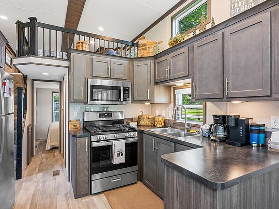 Own your own LOT and this Deluxe 2024 Kropf Park Model in Surfside Association-On Beautiful Lake Mary. Discover the perfect blend of comfort and convenience in this beautiful 2024 Kropf deluxe furnished park model in a meticulously maintained 21-unit association with 3.49 Acres and 322 ft of lakeshore for direct access to Lake Mary. Designed for relaxing getaways or extended stays, this fully furnished retreat features an inviting open layout with vaulted ceilings, an electric fireplace, ceiling fan, and expansive windows that fill the space with natural light.