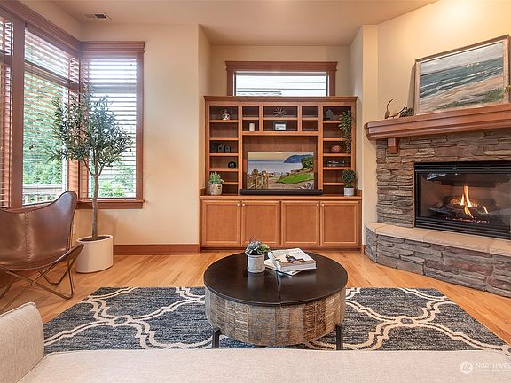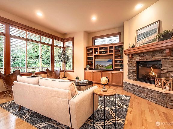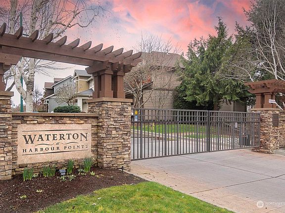 Behind the gated entry of Waterton at Harbour Pointe is this spectacular 4 bed, 3.5 bath home. Quality finishes throughout w/ custom built-in banquet, wet bar, & entertainment center. Stone hearth surrounds the efficient gas fireplace. Gourmet kitchen features a walk in pantry, double ovens & solid stone counters. The great room leads out to a composite deck and private back yard. 2 private bedrooms upstairs share jack & jill bathroom along w/ massive primary suite. Downstairs find another living space, fireplace, wet bar & bedroom w/ ensuite. A/C, built in vacuum & ceiling speakers throughout, sprinkler system, tankless water heater & builder designed elevator ready. Walk along perched above the Puget Sound on the private community trails.