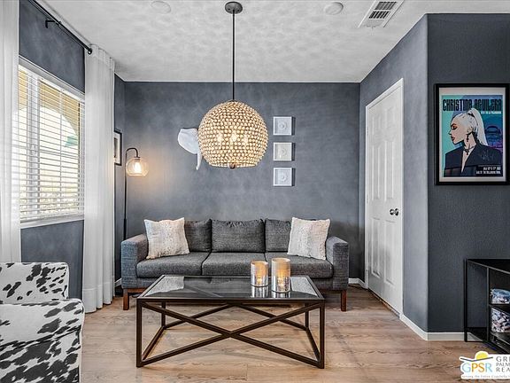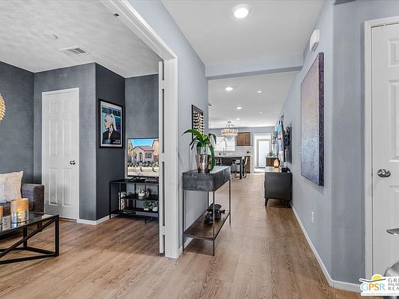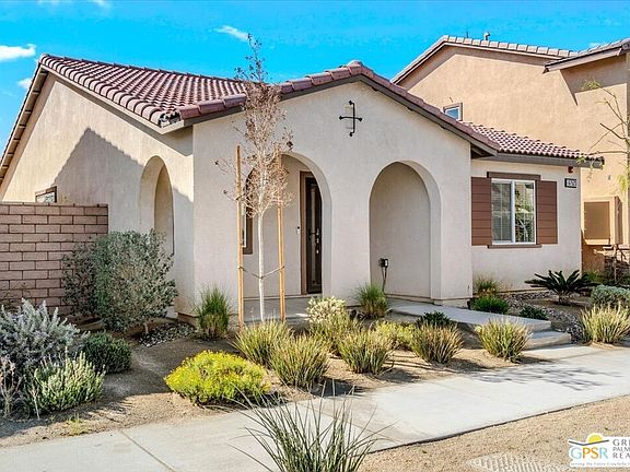 Upgraded, 3 bedroom, single-family, detached home in Cathedral City with over 50K in post-construction upgrades. An open floor plan, with a private backyard boasting lush desert landscaping, spa, and pergola. Quartz countertops, sinks, mirrors, commodes, light fixtures, kitchen & bath hardware, faucets, ceiling fans, exterior entry door, and primary bedroom flooring installed 2022/2023. HOA of $180.00 monthly includes pool, spa, fitness center, pickleball court, BBQ area, common area landscaping, and onsite property management. 15 solar panels on lease program / finished 2023 with a SCE credit of $456.00.