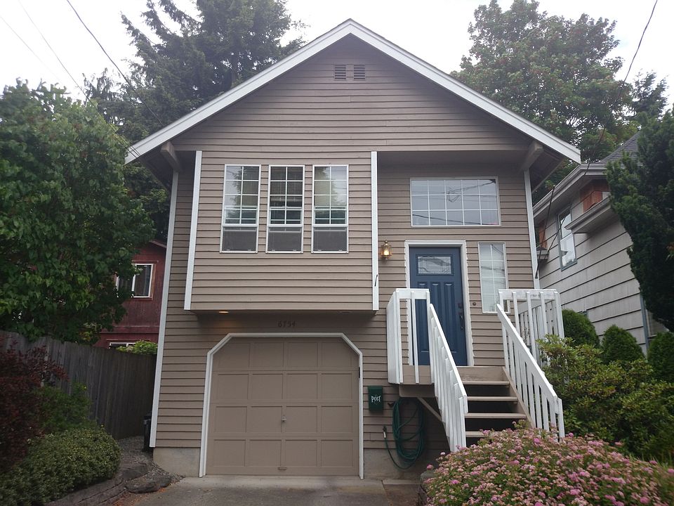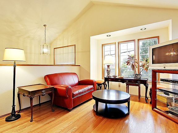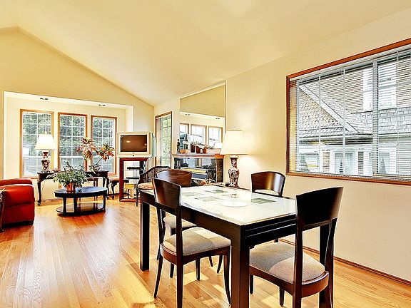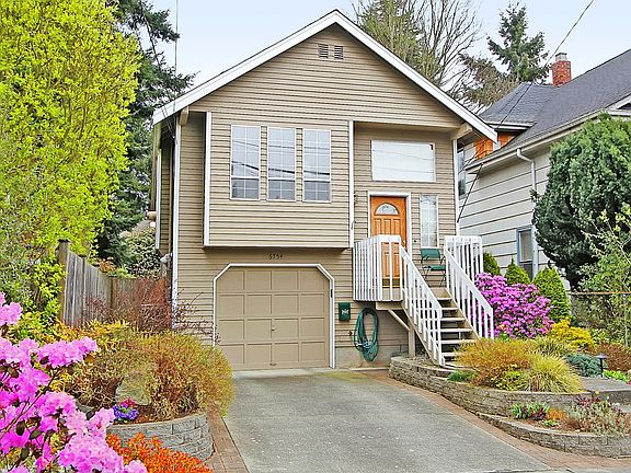 Bright and well maintained Ballard home. Liv / Dining rooms and kitchen with hardwood floors. Fireplace in Liv room. Vaulted ceilings. Ensuite Master and additional bed & bathroom on main level. Finished lower level with 3rd bedroom, 3/4 bath, family room, W/D and extra storage. Deck leads to beautifully designed and landscaped fenced in back yard with water feature. Attached 1 car garage.