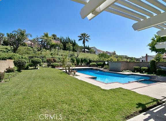 Immaculate Anaheim Hills pool home on one of the largest lots in the neighborhood, offering exceptional curb appeal with mature landscaping and a welcoming double-door entry. This home features 4 spacious bedrooms and 2.5 Bathroom The living room is bright and airy with soaring vaulted ceilings and flows seamlessly into a formal dining area, perfect for entertaining. The remodeled kitchen is a true centerpiece, featuring quartez countertops, stainless steel appliances, refrigerator and a built-in espresso station. Adjacent to the kitchen, the expansive family room features a cozy fireplace and a built-in wet bar complete with cabinetry and wine cooler. Additional upgrades throughout the home include plantation shutters, ceiling fans, new lamnite wood flooring and newer carpet upstairs, fresh interior paint, and newer dual-pane windows. The luxurious master suite boasts a double-door entry, generous walk-in closet, and a spa-inspired bathroom with a separate shower and sauna. The backyard is an entertainer's dream, with a covered patio, oversized sparkling pool, and relaxing spa. The two-car garage includes built-in cabinets for extra storage and EV charger. Located in a top-rated school district, hiking trails and shopping. Move-in ready, this turnkey home offers the perfect combination of style, comfort, and location, making it an exceptional opportunity for discerning tenants.