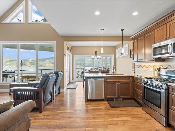 While boasting unobstructed views of the lake, mountains, & valley from its many large windows (all welcoming in heaps of natural light!), this home is a sanctuary! It has only ever been one owner-occupied & uniquely features a steam shower to allow you to recreate your own spa experience, custom kitchen cabinetry with backsplash, a custom-built wrought iron & wood hand railing for the stairs, a full-size washer, propane-heated dryer, invisible screen doors allow the cool summer evening breeze, includes both a gas BBQ & wine cooler. This house has installed a full "entire home" generator for uninterrupted power, you won't find that as an option in many places.