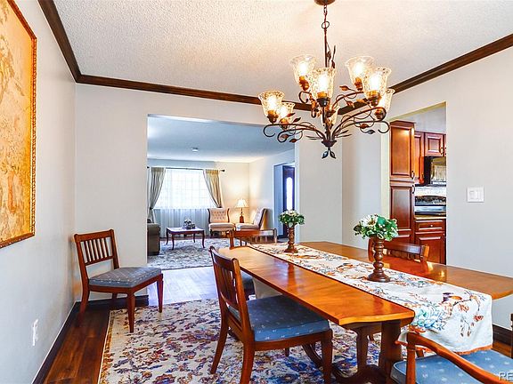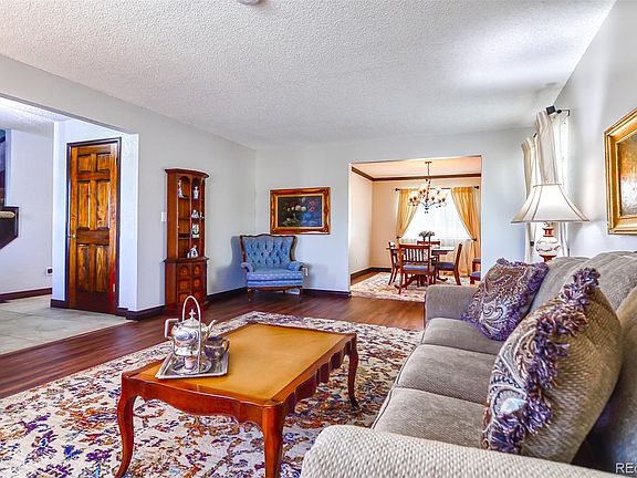 This stunning one-owner, remodeled 2-story sits in a family-friendly Arvada neighborhood at the end of a cul de sac. It has an easy-care yard with mature trees, ready for the next owners to enjoy, with plenty of room for the whole family. The home’s upper level has 4 bedrooms with an owner’s suite. Also on this level is a large full bath with double sinks. The main level has a beautiful tile entry, living room, bedroom/office, ½ bath, private dining room, and large eat-in kitchen adjoining the family room. Enjoy the view while sitting on your large covered front porch, or for privacy move to the back patio which has over 400 square feet of large square tiles and leads to a sprawling treed mini forest with solar-lighted walkways, and a fountain for evening enjoyment. Feel the joy of openness and privacy afforded at your home sanctuary. Quality is evident. Solid wood doors, add to the list of upgrades, including a new garage door, solar attic fans, new windows in 2014, A new radon mitigation unit was installed in April 2024, upgraded roof shingles 2020, new sewer line house to city main, June 2024, new electrical mitigation June 2024, metal siding, premium carpet, premium luxury vinyl plank flooring, and wooden baseboards. The eat-in kitchen has bull-nose granite countertops with a breakfast bar and a pass-through window to the rear patio for an outdoor barbeque. Add a shiny black electric range with a self-cleaning oven, microwave, dishwasher, and pantry. Enjoy the convenience of a main floor washer and dryer area. This great entertainment home has a basement with ¾ bath, a large rec area, a bonus room, and plenty of space for a home theater. A one-year home warranty is offered by the seller. Shopping, restaurants, and Apex Recreational Center are nearby.
