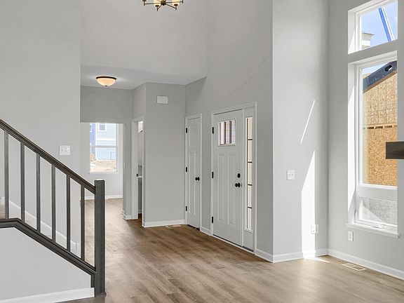 This an end-unit townhome that boasts 3,030 square feet, 4 bedrooms, 3.5 bathrooms, a loft, a flex room, and a finished lower level. As soon as you step foot inside, you will fall in love will the electric fireplace and vaulted ceiling in the family room. The mud room is where you can find the washer and dryer upon entry from the 2-car garage. The flex room located on the main level is the perfect place for an at-home office. Enjoy meals in your dining nook attached to the kitchen or head outside on the balcony for dining al fresco. On the main level you will also find the owner’s suite with an en-suite bathroom and a walk-in closet. Upstairs, the loft is a great spot for some art projects, video games, or just lounging around. There are 2 extra bedrooms that share a full bath as well. Downstairs on the lower level, you will find a large recreation room, bedroom, and bathroom.
